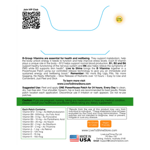 Our powerhouse patch is packed full of B Group Vitamins, essential in supporting your body’s processes and maximizing health!